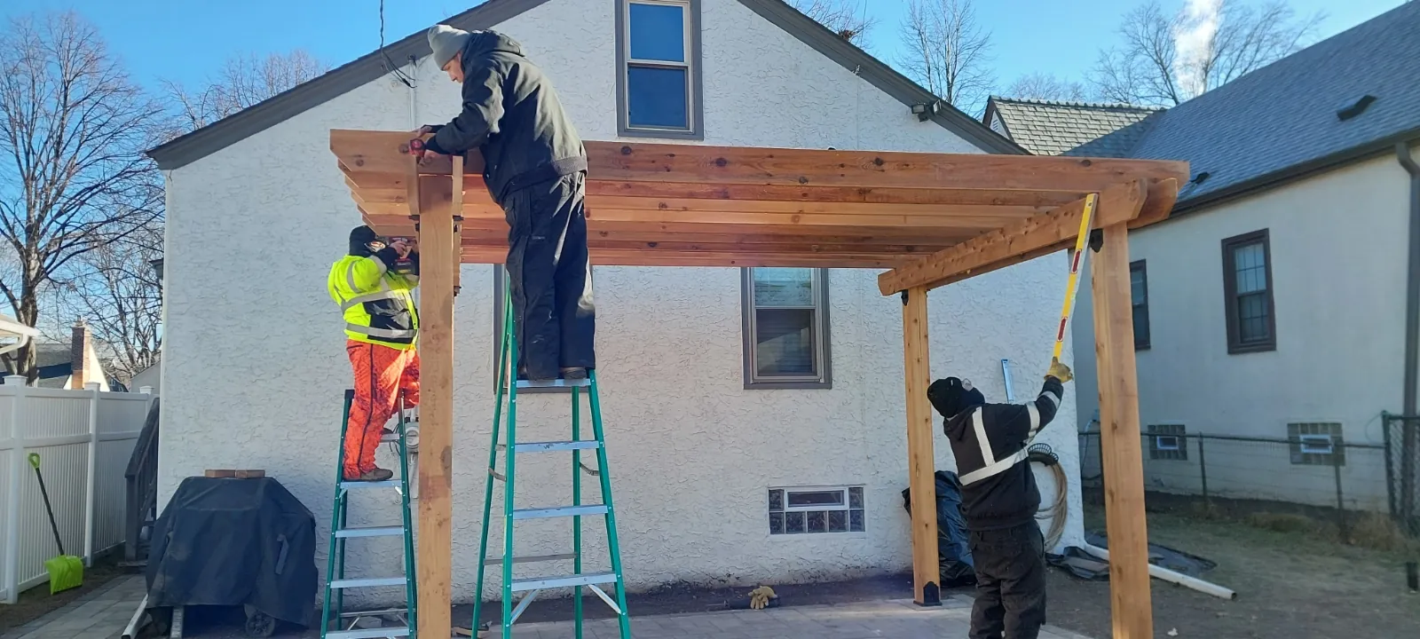 As the construction branch of Minnehaha Falls Landscaping, we build outdoor decks, steps, railings, pergolas, fences, and planters. When it gets colder, we step inside to remodel living spaces with creativity and craftsmanship, including cabinetry.